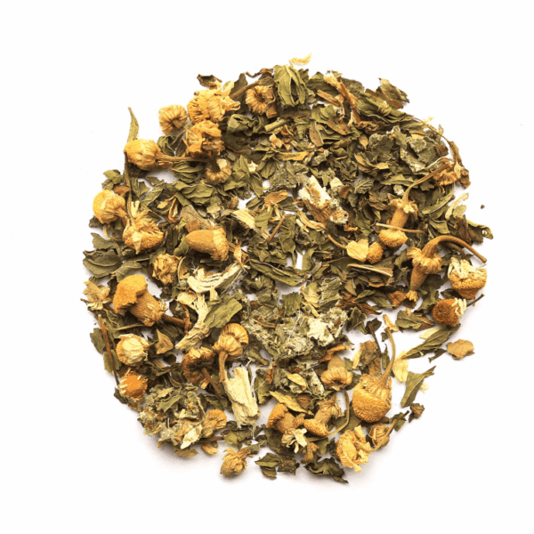 Deze thee combineert de rustgevende kracht van kamille en citroenmelisse met de verkoelende frisheid van biologische spearmint. Marshmallow root staat al eeuwenlang bekend als een kruid dat een verzachtende laag vormt op de maagwand en keel, terwijl frambozenblad van nature bijdraagt aan balans in het spijsverteringskanaal. Samen vormen ze een milde, frisse en fijne thee die zowel overdag als ’s avonds gedronken kan worden – volledig cafeïnevrij.