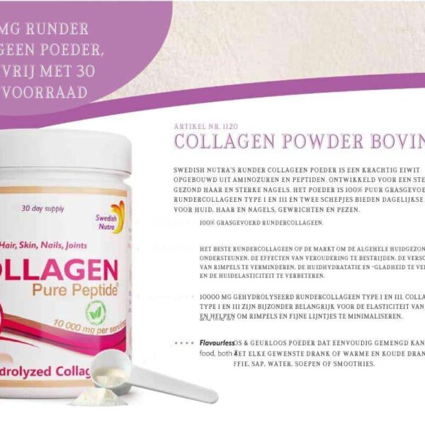 Swedish Nutra Powder Bovine10.000 mg – hooggedoseerd bovine collageen voor huid, haar, nagels & gewrichten. Pure peptiden. 30 porties. Clean formule.