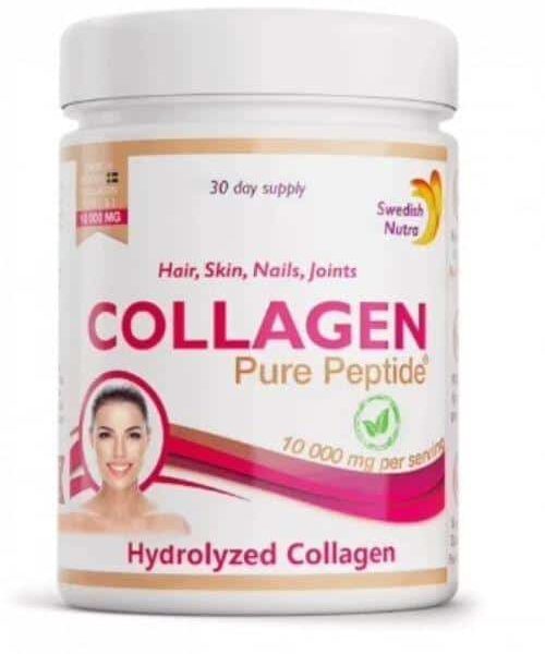 Swedish Nutra Powder Bovine 10.000 mg hooggedoseerd bovine collageen biedt een krachtige ondersteuning voor huid, haar, nagels en bindweefsel. Dit supplement bevat exclusief gehydrolyseerd collageen type 1 & 3, dat is omgezet in goed opneembare peptiden en aminozuren (zoals L-glycine, L-proline, L-lysine en vele anderen). Hierdoor wordt het lichaam optimaal voorzien van bouwstoffen voor huidelasticiteit en weefselonderhoud.