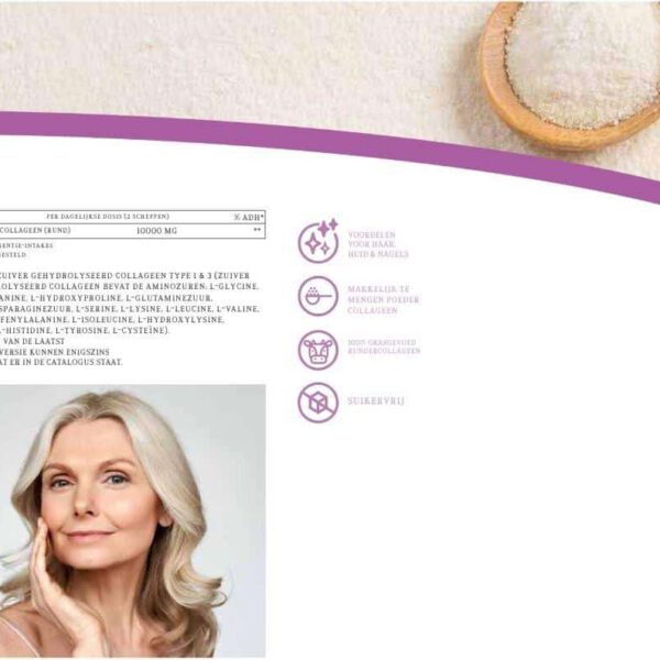 Bovendien is deze poedervorm eenvoudig dagelijks in te nemen: los twee schepjes op in water, sap of je favoriete smoothie. Daarnaast is het product vrij van toegevoegde suikers en geschikt voor iedereen die waarde hecht aan een clean voedingssupplement.
